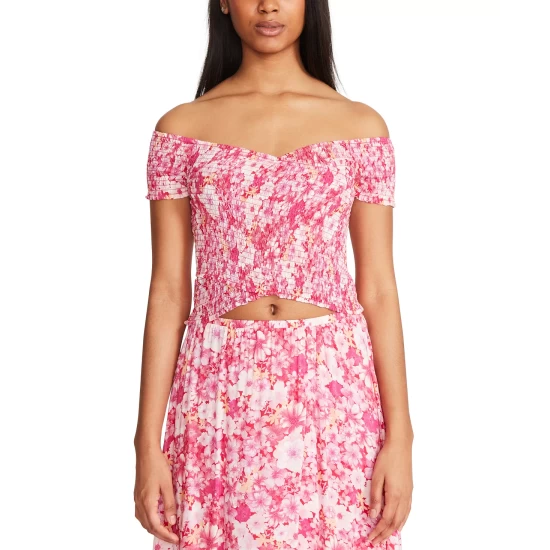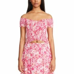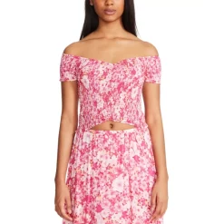 Smocked to perfection this women’s top from BB Dakota by Steve Madden is featured in bursting florals for a fresh look.