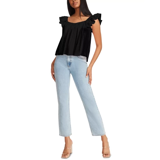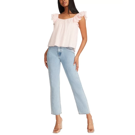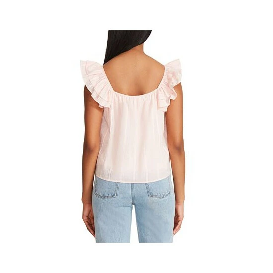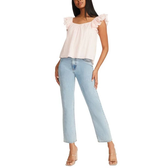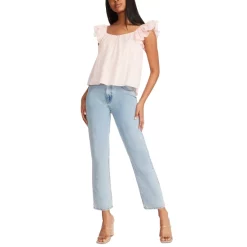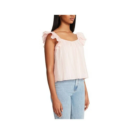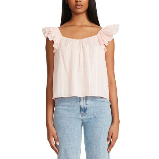 The women’s Head Over Heels from BB Dakota by Steve Madden is a date-night-ready cotton blouse. It has flirty flutter sleeves, a loose shape, and is made of a sweet cotton clip dot material.
