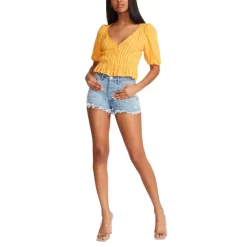The women’s Summer Ting cotton top from BB Dakota by Steve Madden is a striped, gauze, button-down top perfect for your hot weather closet.