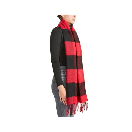 An oversized buffalo-check design keeps you on trend when you wear Steve Madden’s soft and cozy scarf.