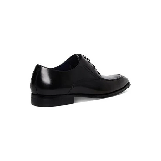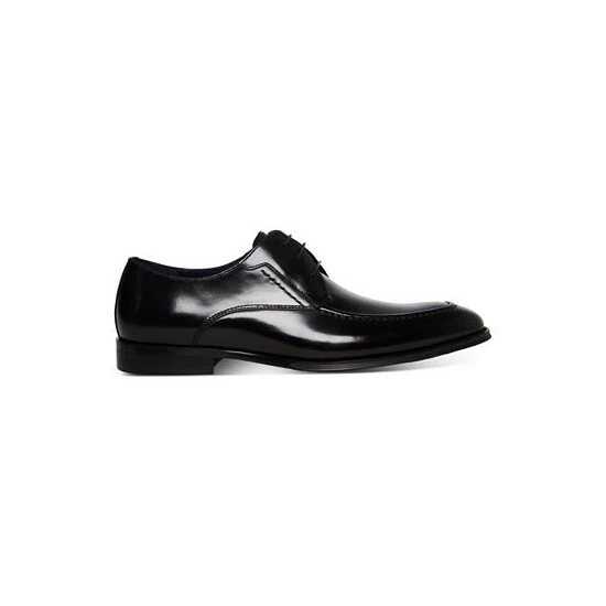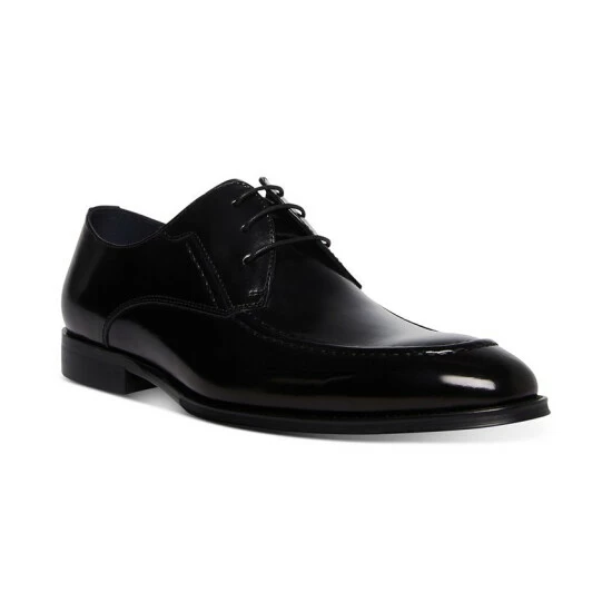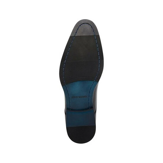 Modern elegance. This Steve Madden dress shoe offers to update your business attire with a smooth waxy leather upper and forward-fashion almond shaped moc-toe.
