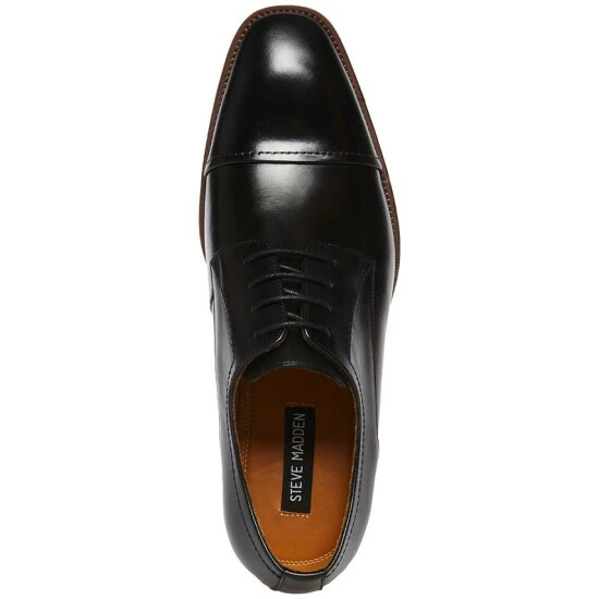 Throw on some smart, handsome style with the smooth leather upper and refined cap-toe of the Kalico Oxford Dress Shoe by Steve Madden.