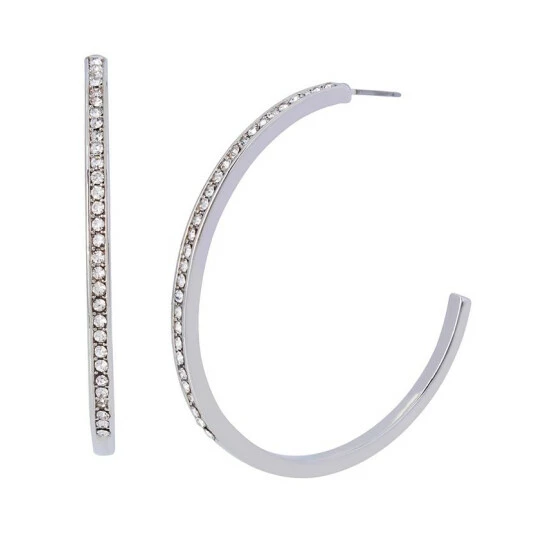 Elegant large-sized open hoop earrings adorned with minimal pave at front.