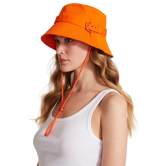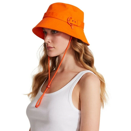 Buckle trim adds a fun twist to the classic styling of Steve Madden’s bucket hat.