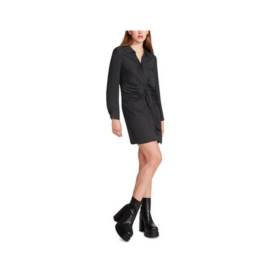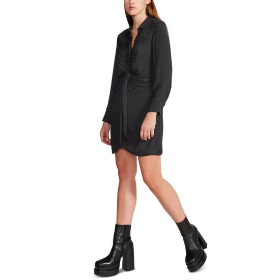 Stun from sun up to sundown in this chic twist-front, leopard-print mini dress from Steve Madden/