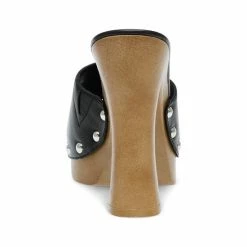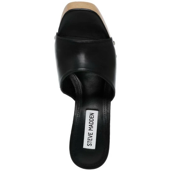 Leather straps and studs top a towering platform heel in the retro-inspired Latish sandals from Steve Madden.