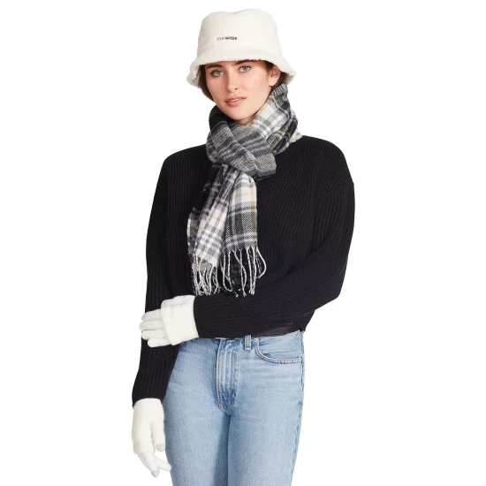 Cheapest 😉 Steve Madden Two-Tone Buffalo Check Blanket Scarf, Created For Macy’s Ivory Multi ✔️
