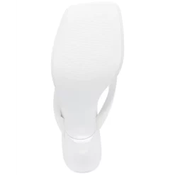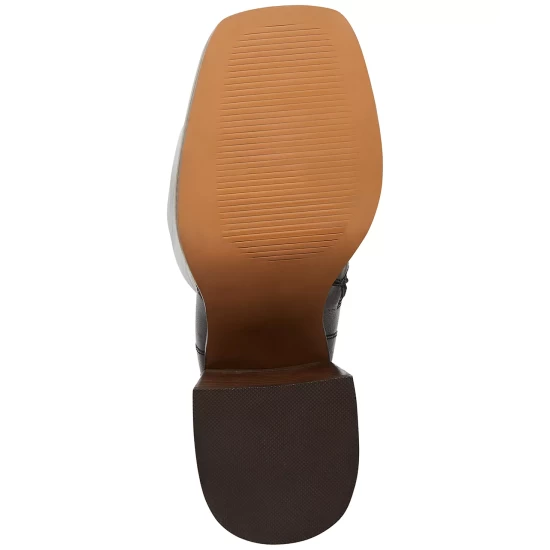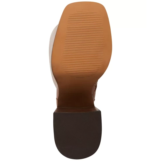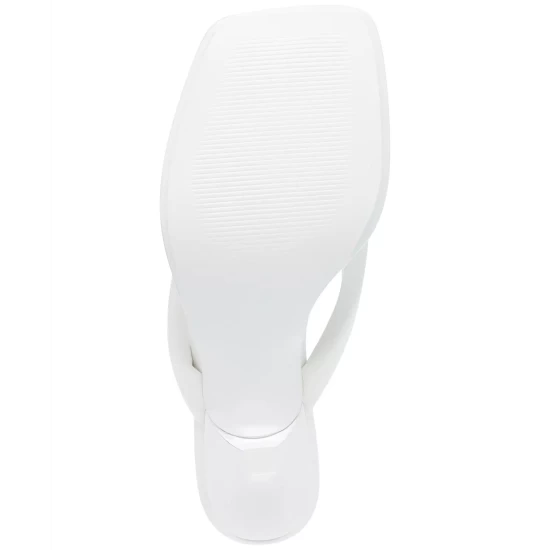 Square toes and puffy straps pair with a sturdy kitten heel in the versatile Moxxi sandals from Steve Madden.