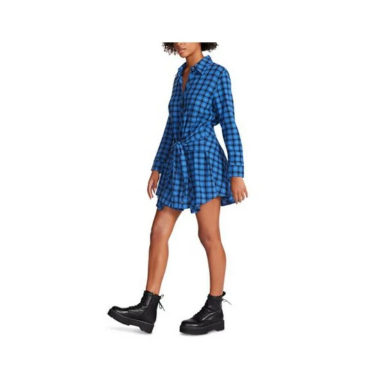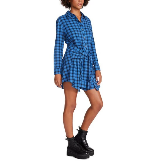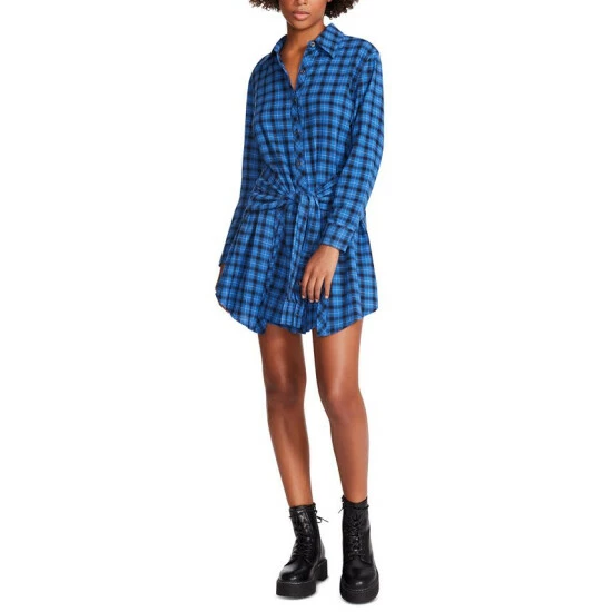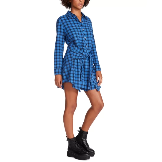 Effortless style is yours in this timeless plaid shirt dress from Steve Madden, with a sweet tie front detail.