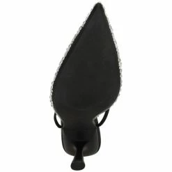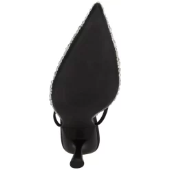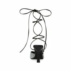 - Wrapping ankle tie design; rhinestone embellishments at upper