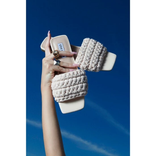Chunky woven straps bring a fresh dimension to dressed up and casual looks alike in the Santina slides from Steve Madden.