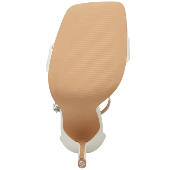 - Square-toe ankle-strap dress sandals with adjustable buckle closure
