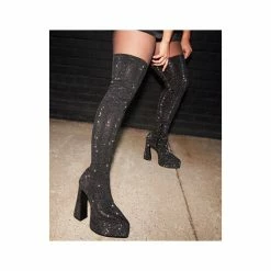 A stunning over-the-knee silhouette adorned in rhinestones takes your look through the roof on a towering platform heel in the Steve Madden Sultry boots.