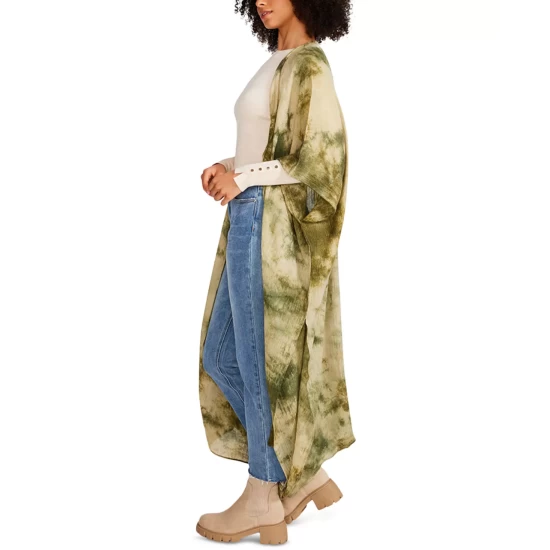 A colorful tie-dyed finish adds retro charm to Steve Madden’s duster kimono.