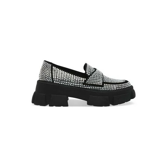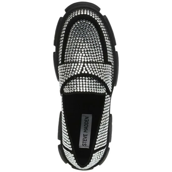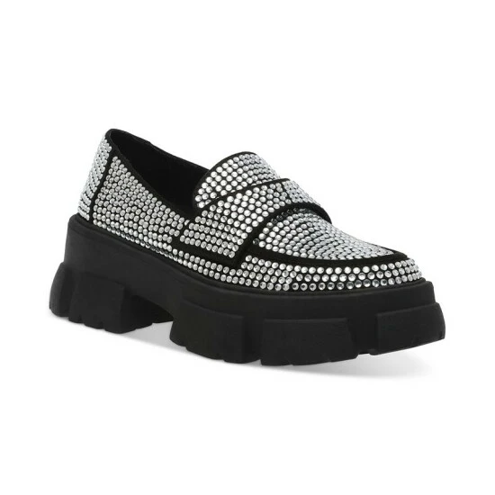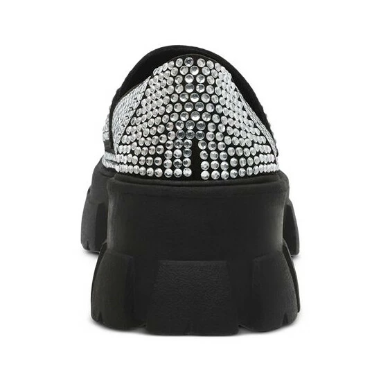 Clad in rhinestones, the Trifecta loafers from Steve Madden elevate a sparkling profile on a chunky lug platform and sturdy block heel.