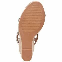 - Round-toe slip-on ankle-strap slingback espadrille platform wedge sandals